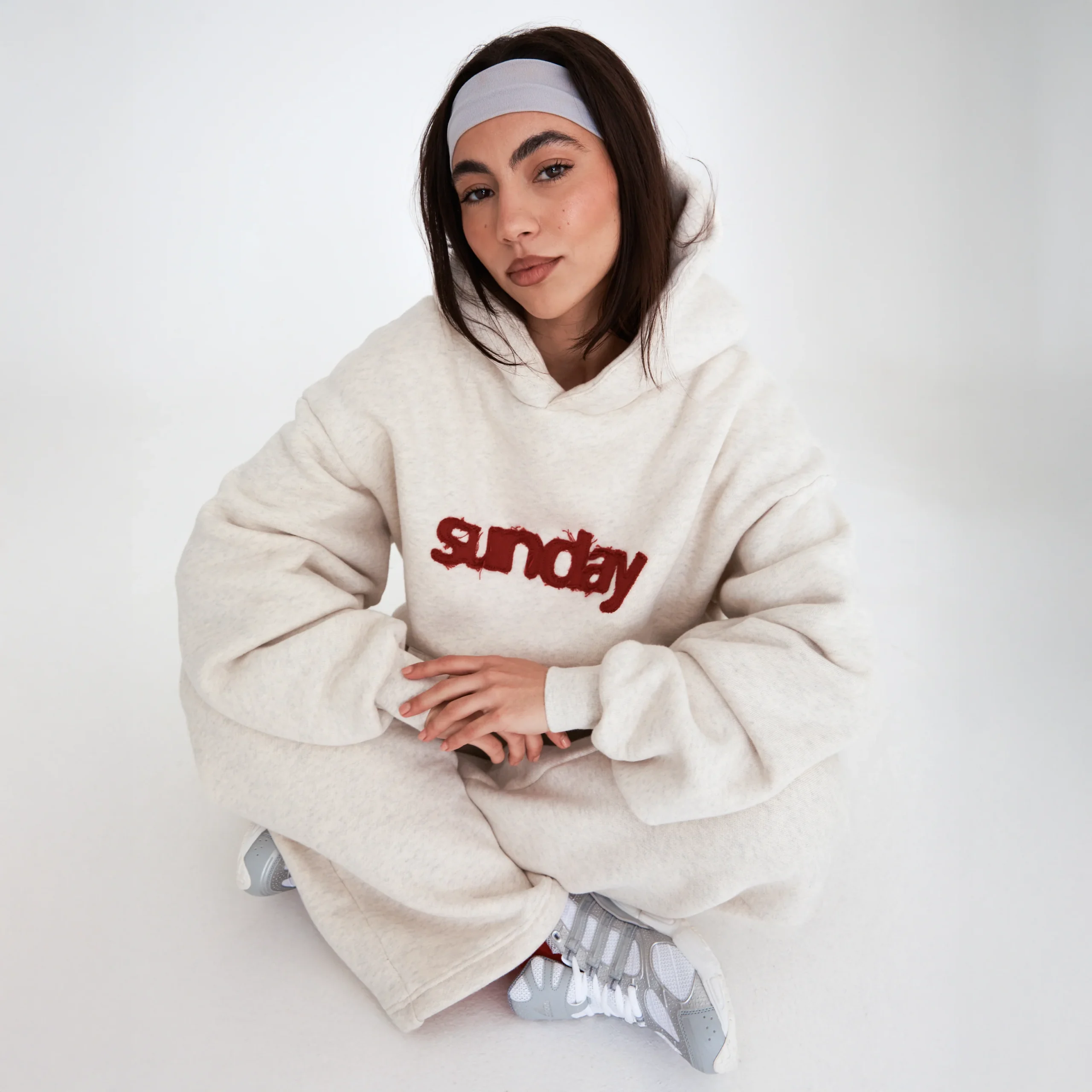 heavyweight applique hoodie oatmeal