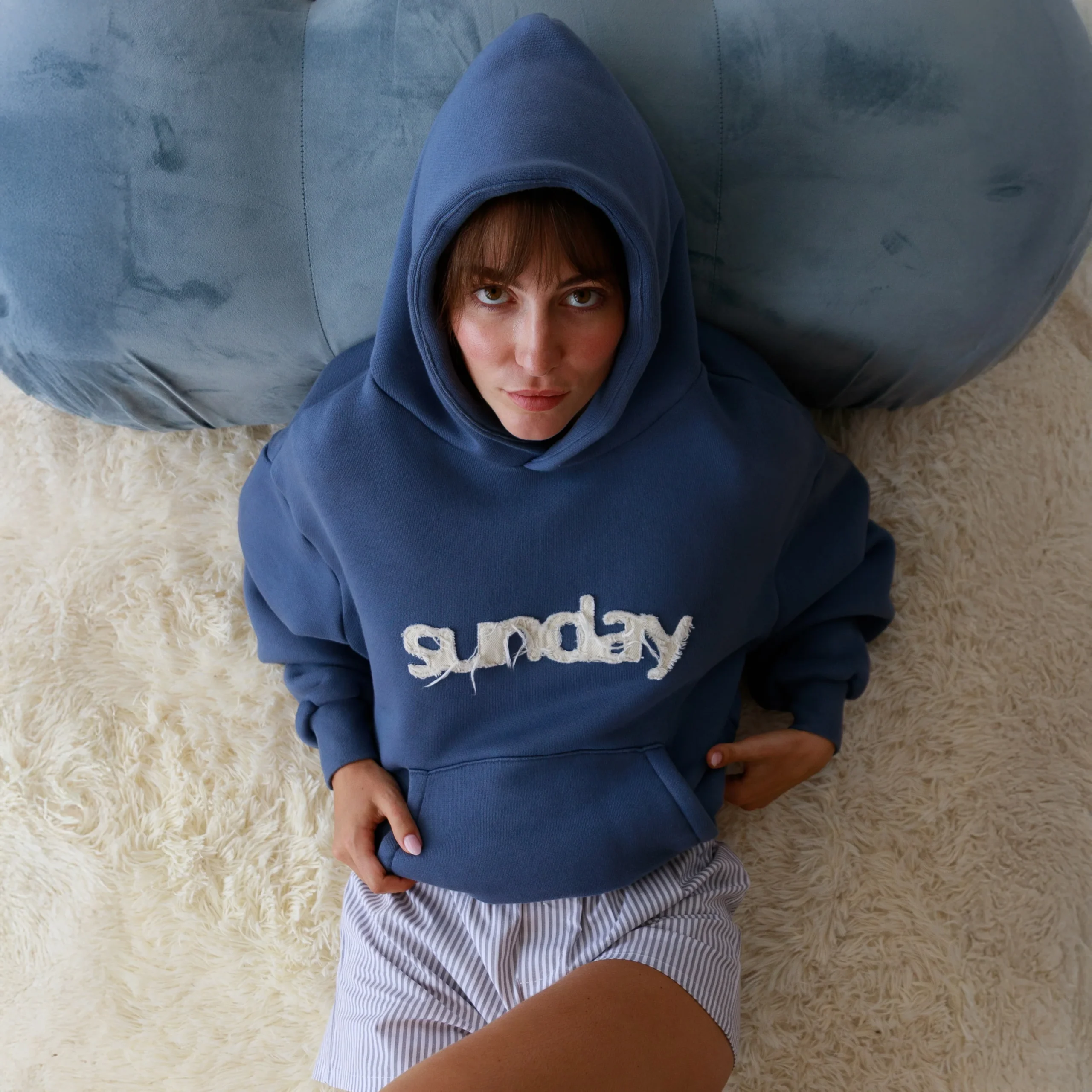 heavyweight applique hoodie vintage blue