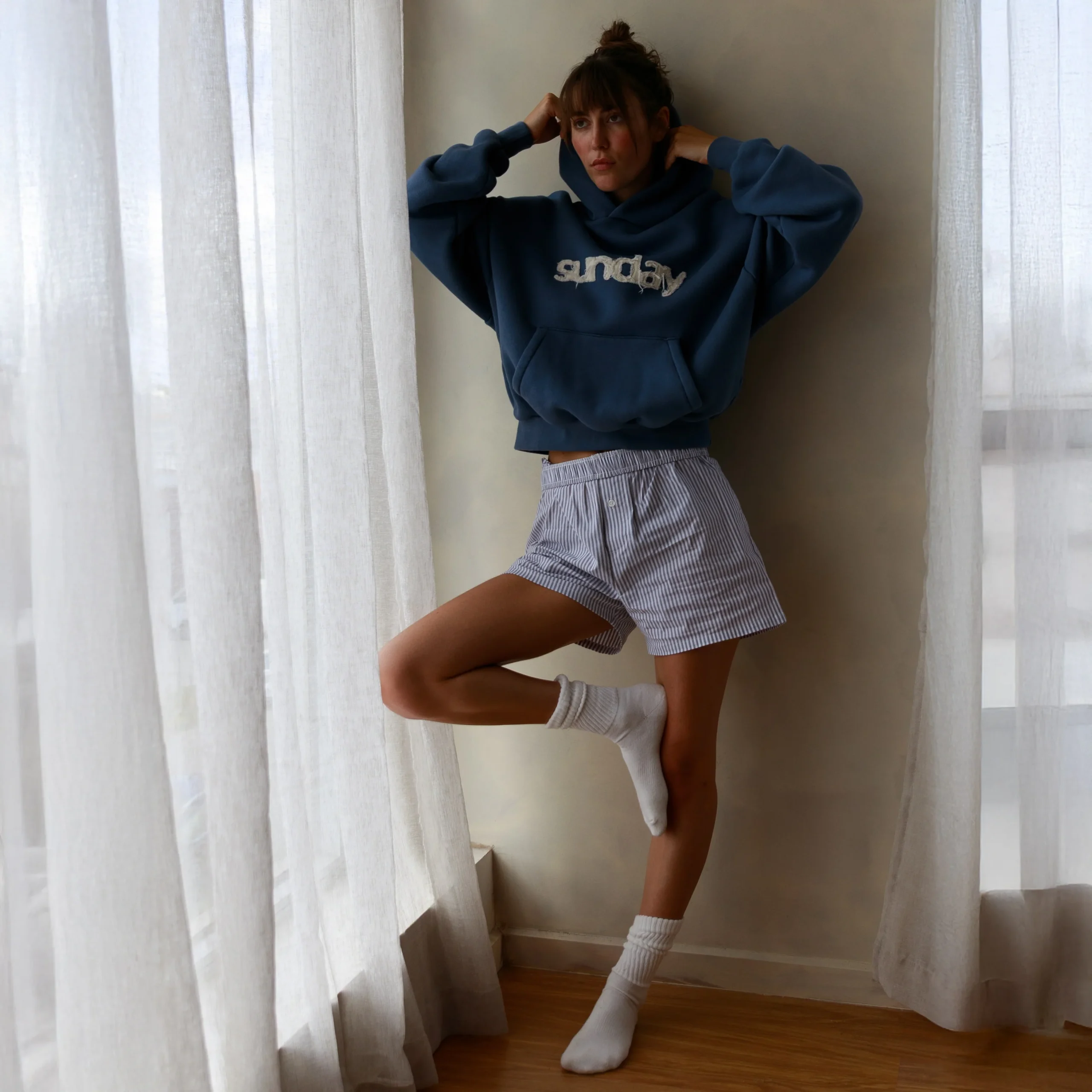 heavyweight applique hoodie navy